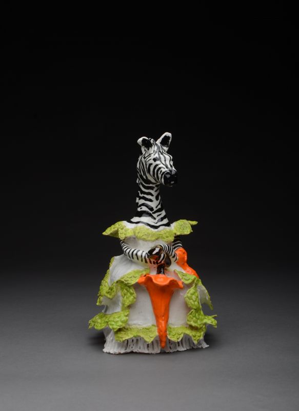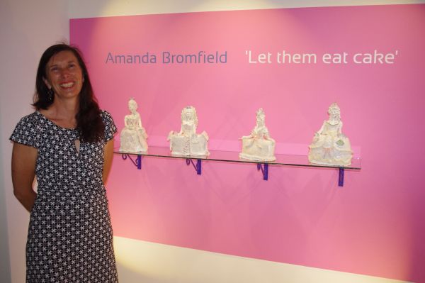 Amanda Bromfield's Rococo Girls are like the barbie dolls of the French Court of Louis XV and XVI. These were fashionable ladies, extravagant and frivolous - with attitudes to match. Amanda's imperfect vintage style figurines take a subtle dig at these women. The Rococo period was a time where art embraced the exotic, the playful and the witty. Rococolossal refers to this time in art history where hair, dresses and expenditure were all 'over the top'. Women competed to set the most outrageous trends. The dress or costume is an intrinsic ingredient in Amanda's work. The dress is Amanda's metaphor for identity. This identity can be individual or that of a society as a whole. In this exhibition Amanda also uses the dress to represent overconsumption and materialism. The more voluminous and extravagant the costume, the greater the consumption of resources.