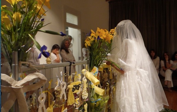 This is an installation dedicated to the memory of the women who have suffered domestic violence.